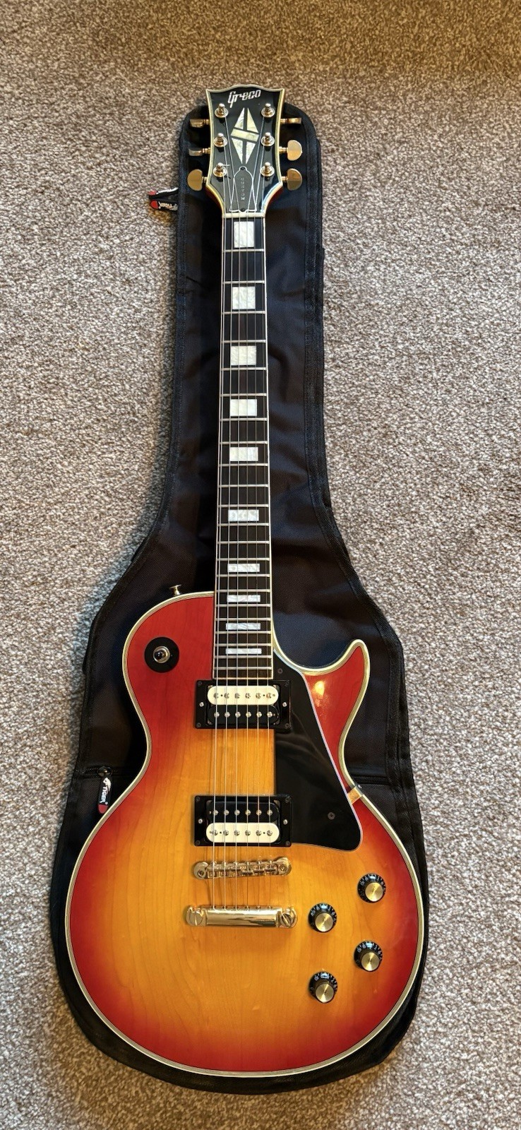 This is the rarer model with mismatched pickups. Other than the upgraded Gotoh machine heads it's all original with era correct Maxon pick ups and " Greco" imprinted neck pickup